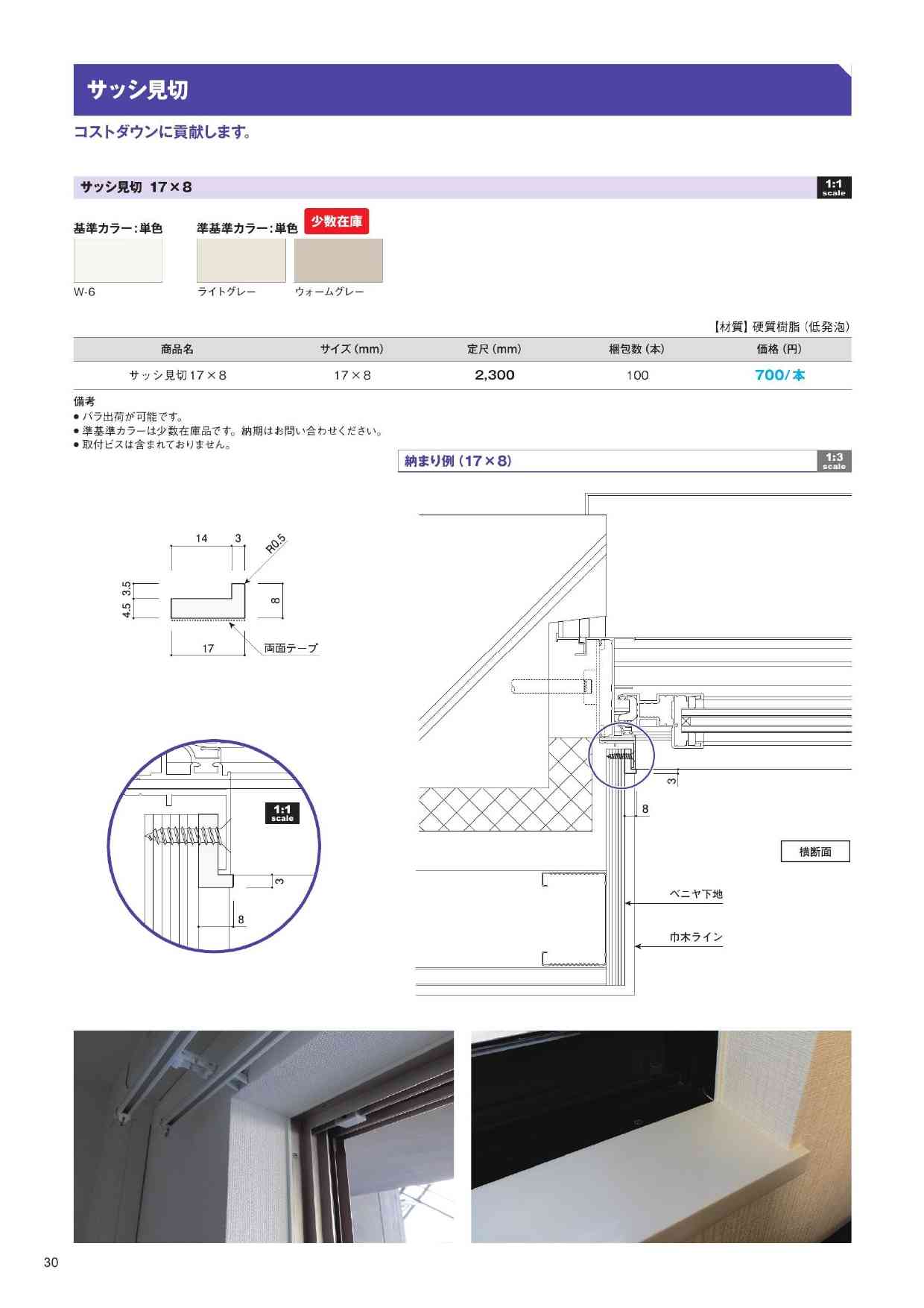 サッシ見切 17×8(窓枠用・2300mm)