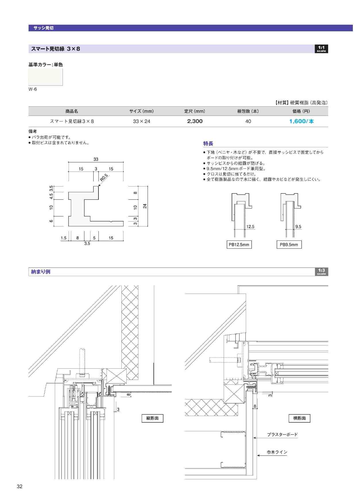 スマート見切縁 3×8 L2300 窓枠 W-6(白色)