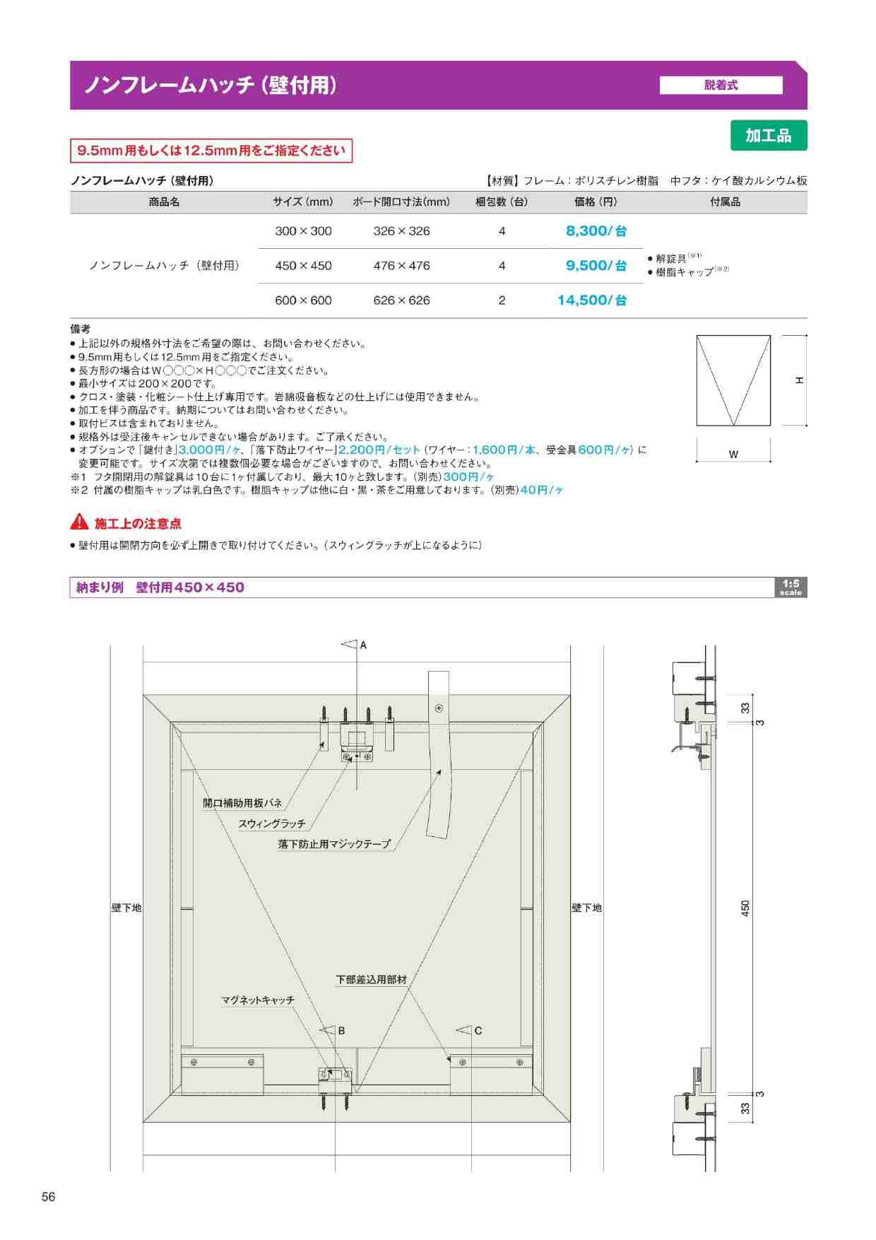ノンフレームハッチ 壁用 300×300 PB9.5/12.5用