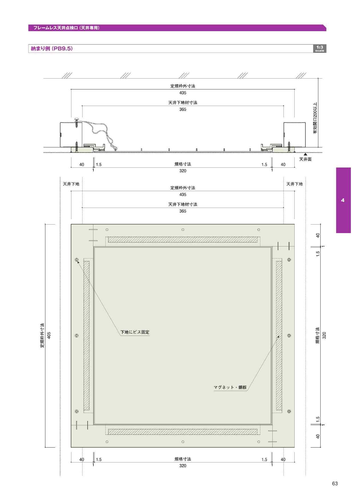| 用途 | 天井点検口(枠無し美観仕上げ用) |