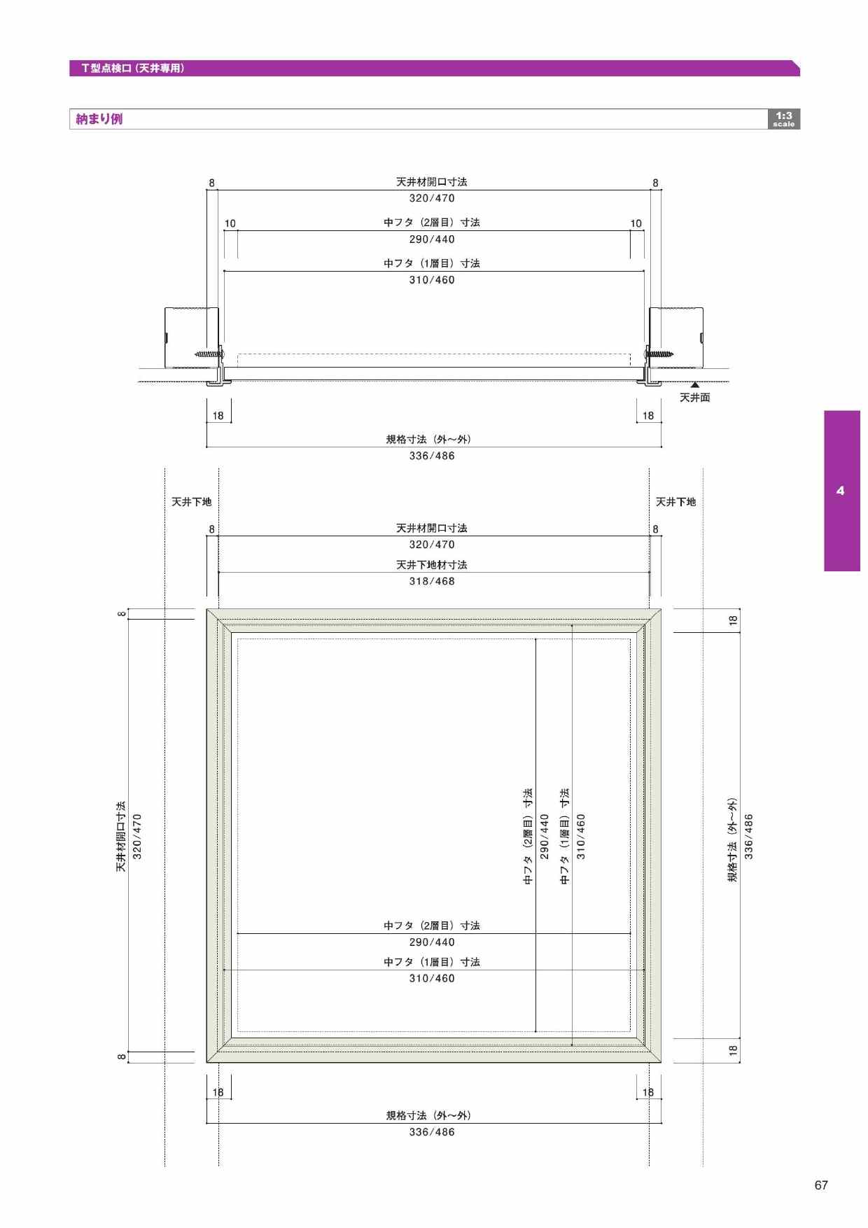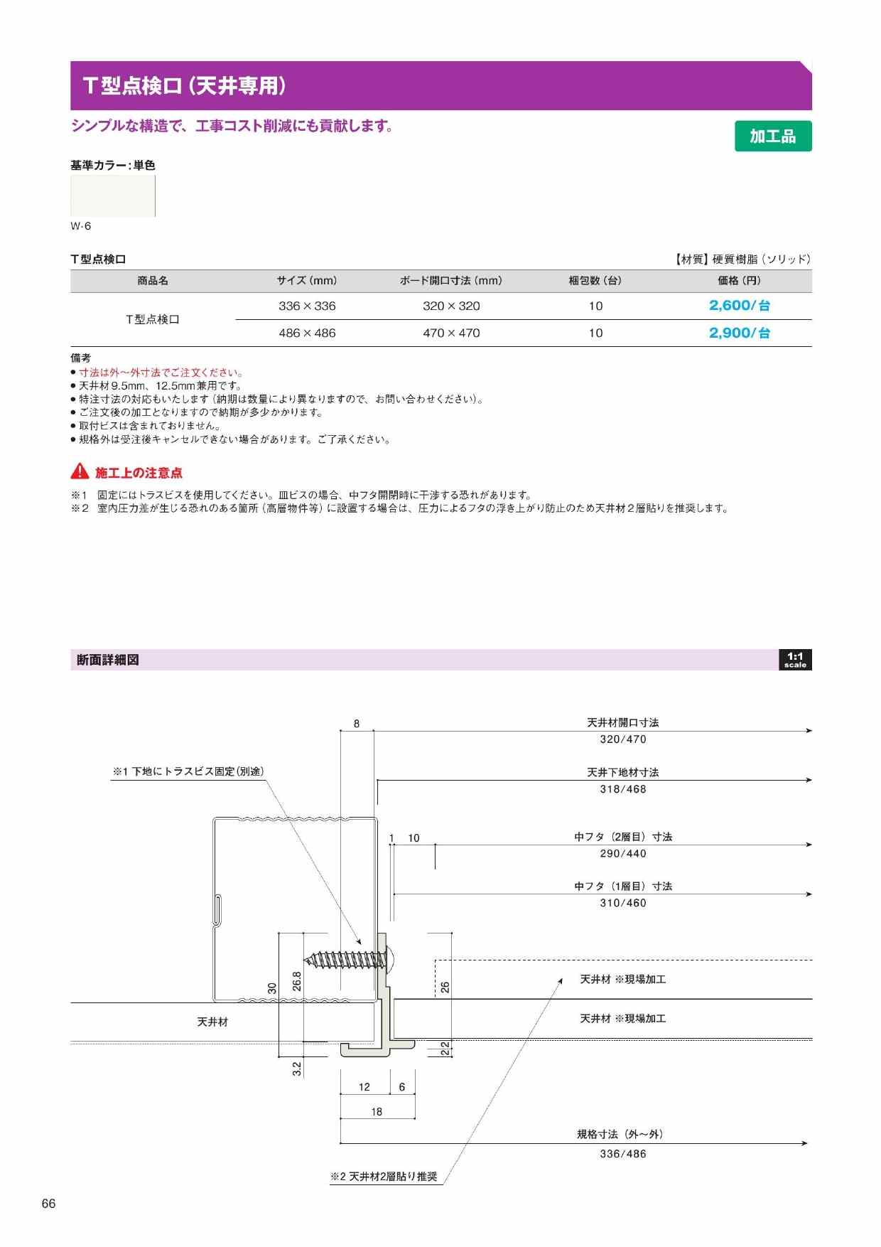 T型点検口(天井専用)336×336/486×486 天井材9.5/12.5mm 兼用